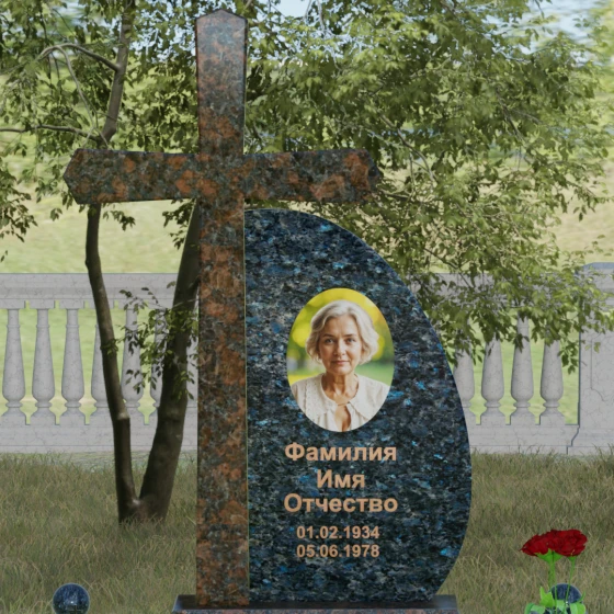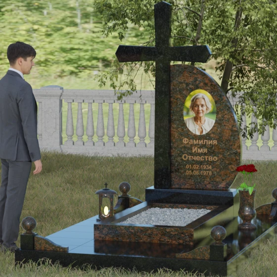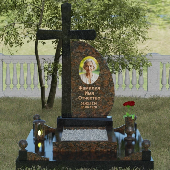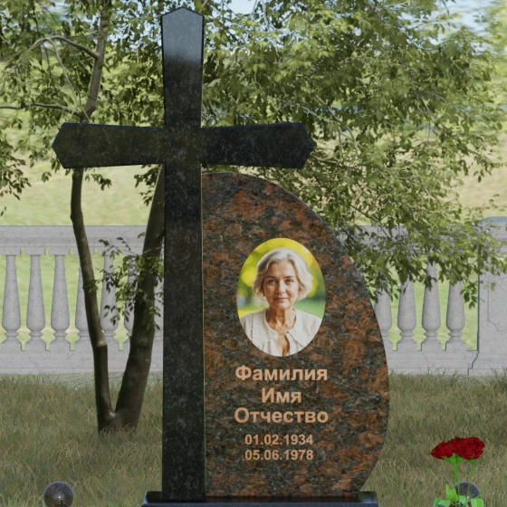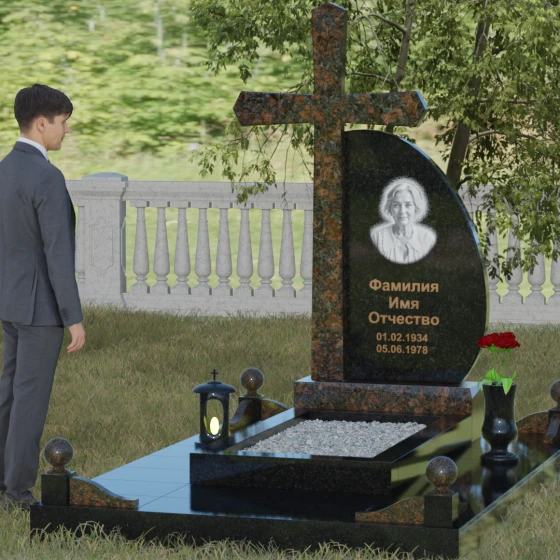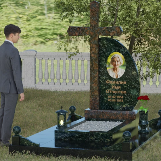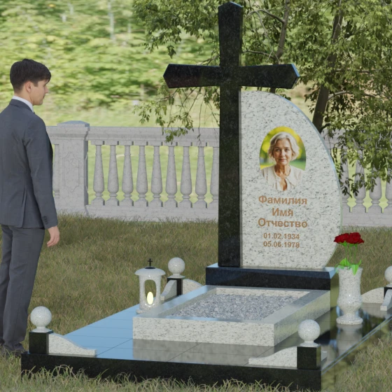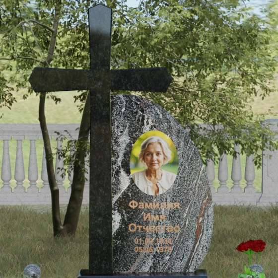 Кому подойдет: Данная модель является универсальной благодаря сочетанию религиозного символа и современной эстетики. В темном исполнении гранитный монумент идеально подходит для оформления мужского захоронения, подчеркивая статус и твердость характера. В более светлых тонах, таких как серый гранит или белый мрамор, композиция приобретает нежность и одухотворенность, что делает ее прекрасным выбором для памятника матери, жене или дочери. Это выбор тех, кто ценит архитектурную целостность и желает увековечить память близкого человека в форме, неподвластной времени.