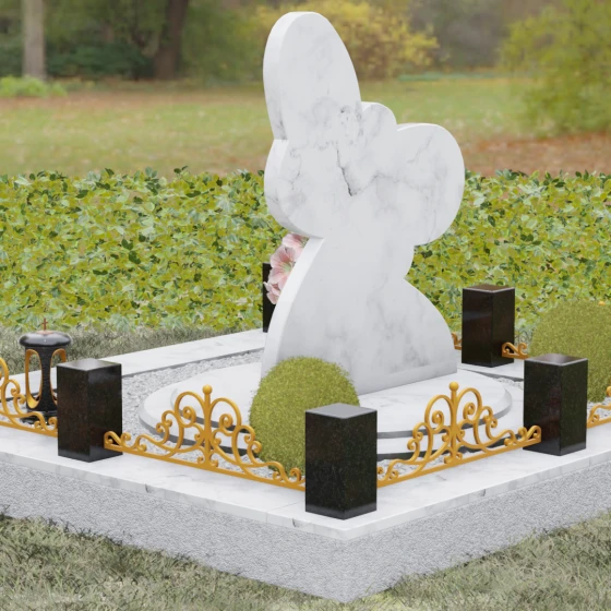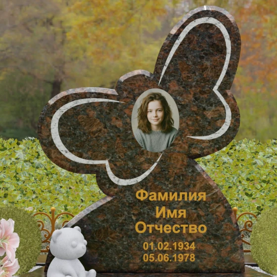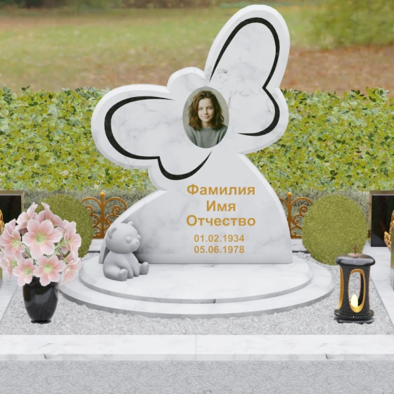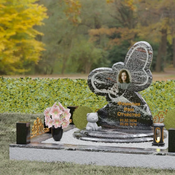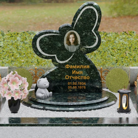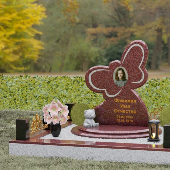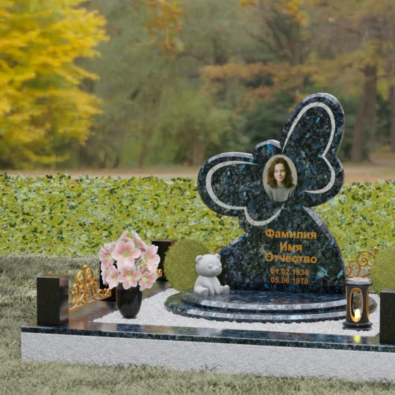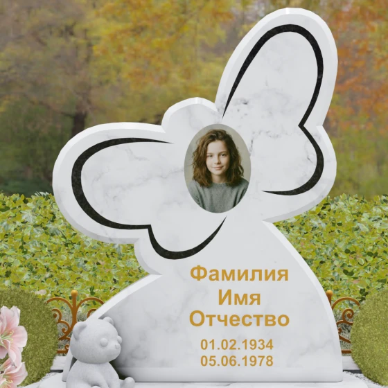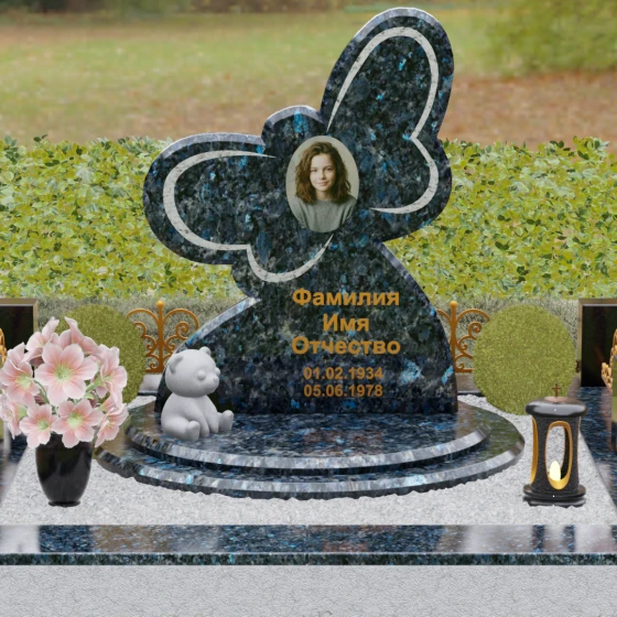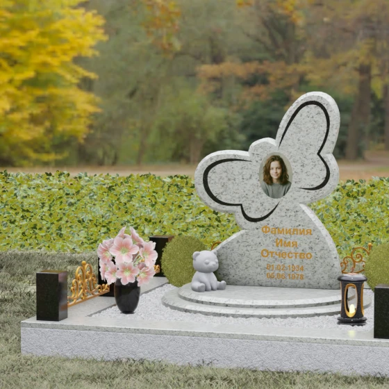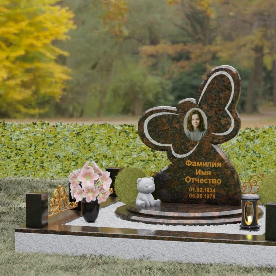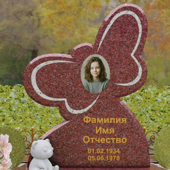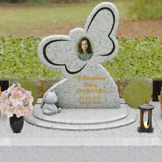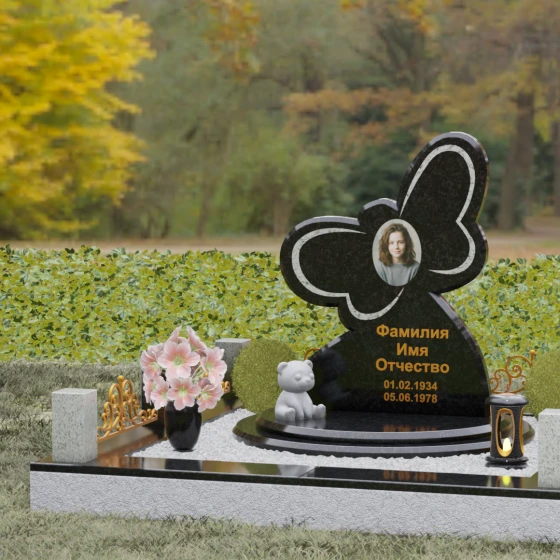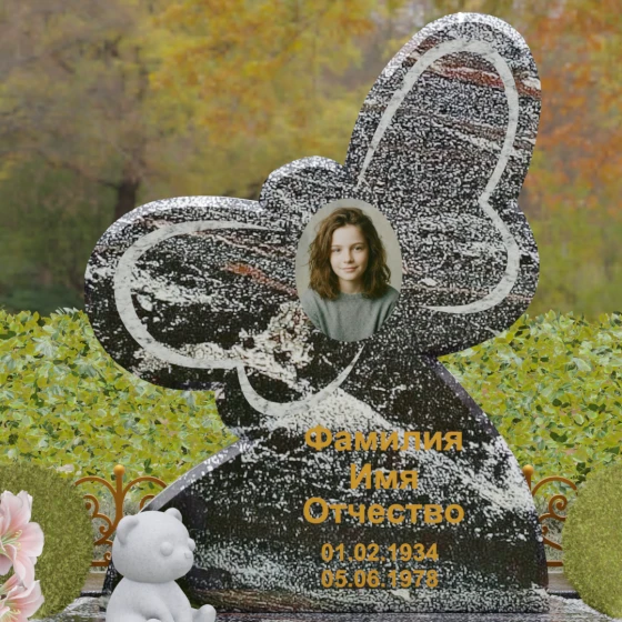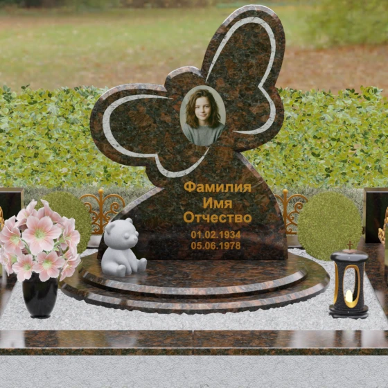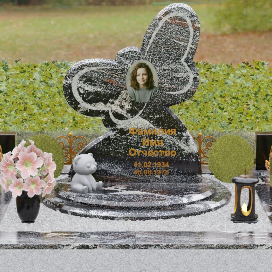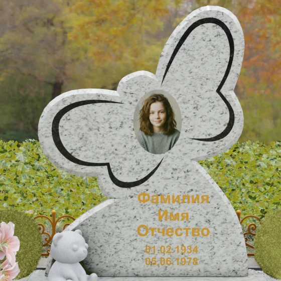 Кому подойдет: Данная модель является универсальным символом нежной привязанности и вечной души. Форма бабочки чаще всего выбирается для оформления захоронений молодых женщин, дочерей или сестер, подчеркивая их хрупкость, красоту и светлый след, оставленный в сердцах близких. В светлых тонах камня (например, в мраморе) изделие идеально подойдет для детского захоронения, символизируя чистоту ангельской души, а в темных гранитах станет величественным знаком памяти о яркой и неординарной творческой личности.