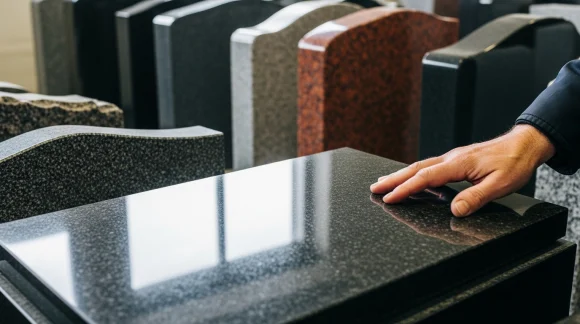 Гранит Габбро-диабаз, представленный на фотографии, отличается своей глубокой, насыщенной чернотой и мелкозернистой структурой. Этот камень, словно сама ночь, поглощает свет, создавая ощущение таинственности и величия. Его плотность и устойчивость к внешним воздействиям делают его идеальным выбором для создания памятников, которые будут служить вечным напоминанием о тех, кто ушел.