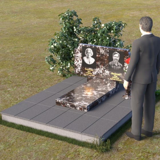 Оформление: Для этой формы стелы идеально подойдет гравировка портретов в овальной или прямоугольной рамке. Имена и даты жизни можно расположить под портретами, используя золотой или серебряный шрифт. Дополнительно можно добавить эпитафию, выражающую любовь и скорбь. Не перегружайте композицию лишними деталями – лаконичность и сдержанность подчеркнут достоинство и элегантность памятника.