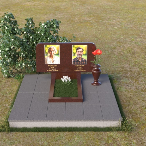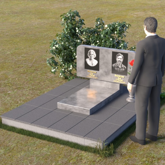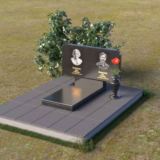 Оформление: Для данной формы стелы идеально подойдет гравировка портретов в овальной или прямоугольной форме. Расположение портретов может быть как симметричным, так и асимметричным, в зависимости от ваших предпочтений. Имена и даты жизни рекомендуется располагать под портретами, используя элегантный шрифт с засечками. Также можно добавить эпитафию, отражающую личность усопшего и вашу любовь к нему.