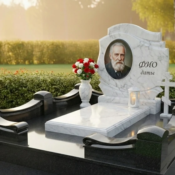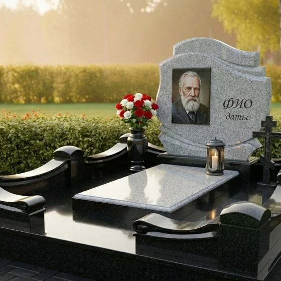 Оформление: Учитывая плавные изгибы и элегантную форму стелы, мы рекомендуем использовать для гравировки портрета метод лазерной или ручной гравировки, что позволит добиться максимальной детализации и глубины изображения. Для ФИО и дат жизни идеально подойдут классические шрифты без излишних декоративных элементов, чтобы сохранить чистоту и строгость линий. Расположение портрета в верхней части стелы, а текстовой информации ниже, создаст гармоничную композицию, которая будет легко читаться и восприниматься. Возможно также добавление символических элементов, таких как ветви, цветы или религиозные символы, которые могут быть деликатно вписаны в общую концепцию, подчеркивая индивидуальность усопшего.