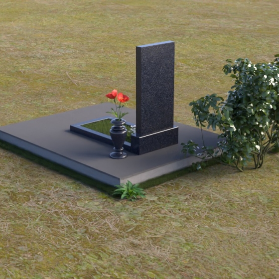 Мемориальная композиция представляет собой вертикальную стелу, выполненную в строгой прямоугольной форме, символизирующей стойкость и незыблемость памяти. Верхняя часть стелы, с ее четкими гранями, словно устремлена ввысь, к небесам, напоминая о духовной составляющей человеческой жизни. Боковые грани стелы обработаны с особой тщательностью, создавая эффект благородной сдержанности. Фаска, аккуратно снятая по периметру, придает изделию завершенный и элегантный вид. Горизонтальная плита, расположенная перед стелой, выполнена в зеркальной полировке, отражая небо и окружающий мир, символизируя продолжение жизни и связь с ушедшим.