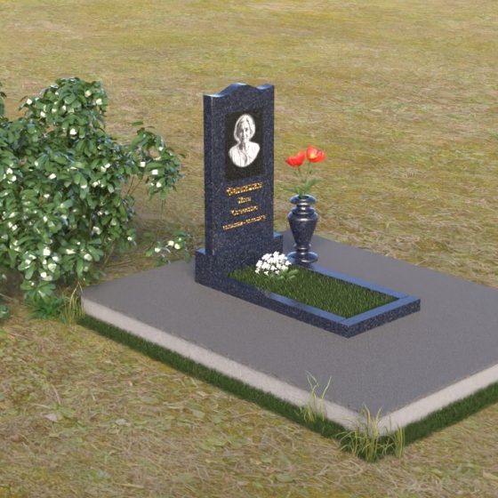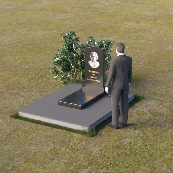 Величественная стела памятника ПВ 008 представляет собой элегантное сочетание строгих линий и плавных изгибов. Верхняя часть стелы имеет волнообразную форму, смягчающую строгость камня и придающую ей утонченность. Грани стелы тщательно отполированы до зеркального блеска, отражая свет и создавая ощущение легкости и воздушности. На лицевой стороне стелы размещен портрет усопшего, выполненный методом гравировки. Ниже располагаются надпись с именем и датами жизни. Под стелой расположена горизонтальная плита, также выполненная из полированного гранита. Ее строгие прямоугольные формы контрастируют с плавными линиями стелы, подчеркивая ее выразительность. Фаски по периметру плиты смягчают углы и придают ей завершенный вид. Рядом со стелой установлена небольшая ваза из темного гранита с изящным орнаментом, предназначенная для живых цветов.