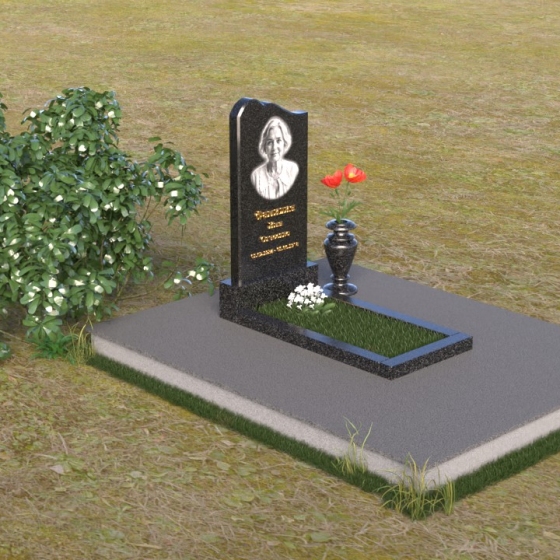 Памятник ПВ 017 – это воплощение сдержанной элегантности и глубокого уважения. Величественная стела, выполненная в форме плавной арки, словно устремляется в небеса, символизируя духовное возвышение. Верхняя часть стелы деликатно скруглена, смягчая строгие линии камня и придавая облику памятника теплоту и человечность. Полированная до зеркального блеска поверхность черного гранита контрастирует с матовым изображением лица и надписями, создавая завораживающий эффект глубины и объема. Этот контраст акцентирует внимание на личности ушедшего, его жизненном пути и неповторимом образе.